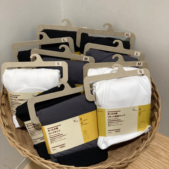 ●Woman Warm Cotton Crew Neck Long Sleeve T-shirt off White/Light Beige/Greysh Brown/Black tax included 1,490 yen
