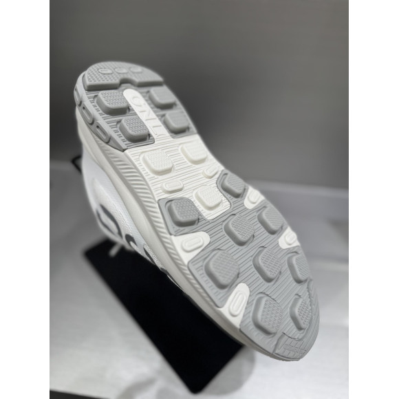 This cushion element is supported by the surrounding grooves and air chambers in the midsole that shrink when landing, effectively absorb shocks. This minimizes impact and fine vibration during landing, and realizes a smooth and energy-efficient kick-out.