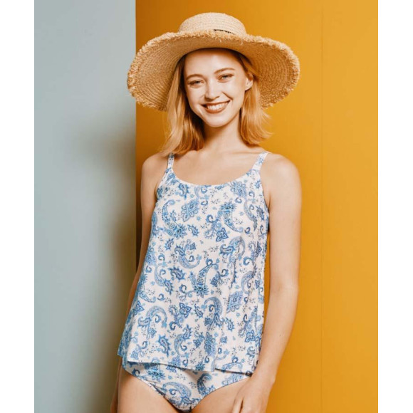 The tankini with a relaxed silhouette is comfortable to wear.◎
